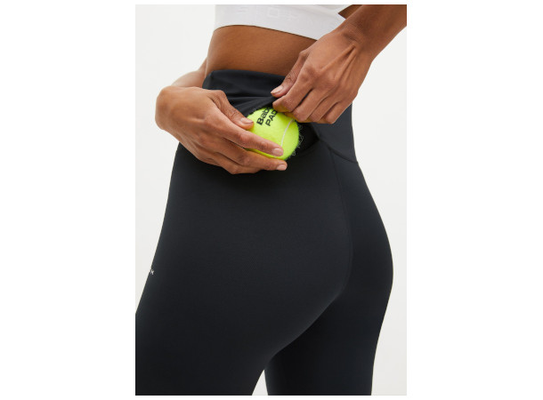 Court er et par leggings med behagelig sykkellengde ben. Den er laget i myk resirkulert polyamid, et svært pustende stoff som også transporterer fuktighet bort fra huden din. Court har en nyttig utvendig kulelomme bak i midjen samt en justerbar snøring, og de er dekorert med en Röhnisch-logo foran. Designet med høy midje og en indre søm på 21 cm i størrelse M. Tilgjengelig i sort, noe som gjør den enkel å matche med resten av garderoben din.