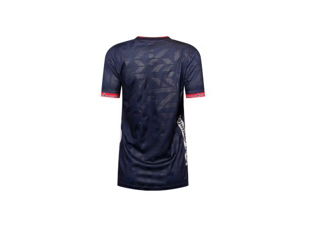 Dette mønsteret har blitt varmetrykket i trøyen på begge sider for å gi en ekstra dimensjon til drakten, når den vil lyse opp i hallen, til nye store øyeblikk. For å holde fast i de norske røtter, og trøyens identitet, har det blitt tilføyd flagg i avslutning av armene.
