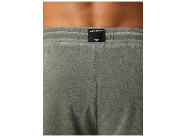 Björn Borg Borg håndklebassengshorts for menn er laget av polyester og bomull i et kvalitetshåndklestoff. De kommer i normal passform med kortere lengde, og har elastisk linning i matchende materiale med justerbar avrundet snøring, frontlommer på hver side, falsk gylf foran og vevd logoetikett bak.