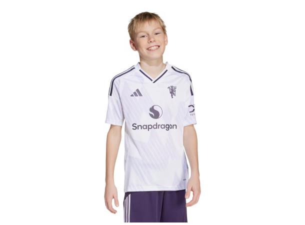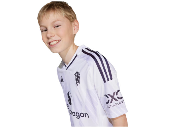 Adidas Manchester United Bortedrakt til barn for 2025/26-sesongen er laget med AEROREADY-materiale som tar vekk svetten fra kroppen, og holder deg tørr og komfortabel under aktivitet og når du heier på laget ditt.
